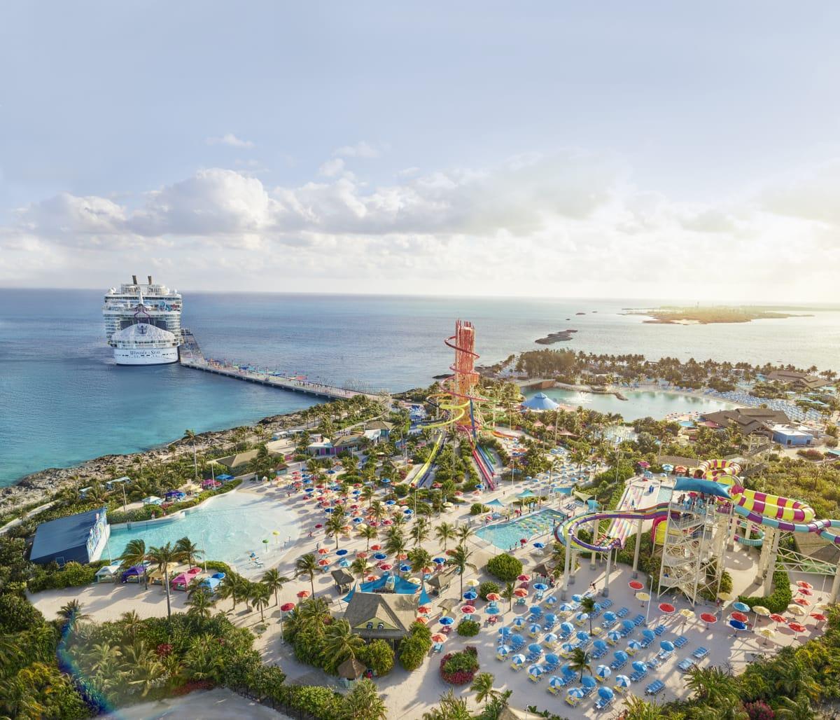 - At 7:00 AM, arrive in CocoCay, Royal Caribbean’s private island in the Bahamas, a tropical paradise featuring pristine beaches, thrilling water activities, and an exclusive, island-style retreat for the ultimate day of relaxation and adventure.